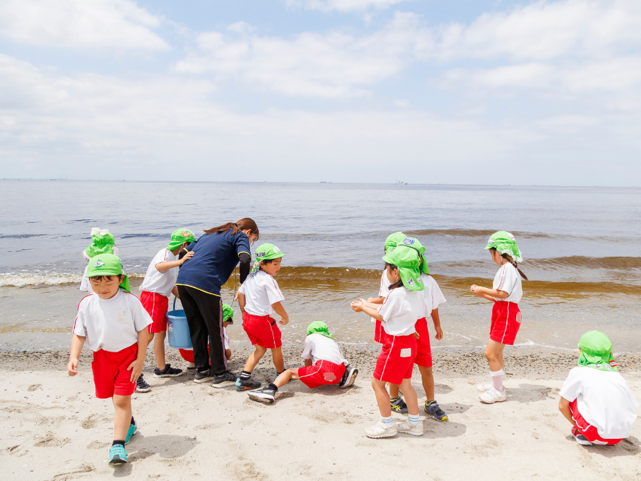 駅も、海も近い真砂幼稚園は、元気な先生がたくさんいます。先生一人ひとりが子どもたちの教育に真剣!全力で先生しています。でも、帰りはしっかり帰宅。先輩より早く帰る後輩もたくさんいます。しっかり働き、しっかり帰り、しっかり遊ぶ。真砂幼稚園は先生が効率的に働くための環境を常に作り続けています。認定こども園では珍しい複数担任制もそのうちの一つ。