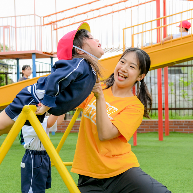 園の自慢同期も多く学園全体でも職員の数が多いところが魅力を感じています。様々な人が集まる場だからこそ学べることが多く、苦手なことはフォローしてもらい得意なことで活躍できる職場です。お互い助け合える環境だからこそ充実した指導ができています。